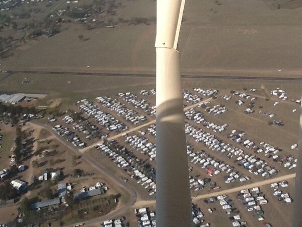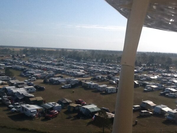 Attended the Australian Camp Oven Festival at the Millmerran Airfield / Showgrounds as advertised Australia wide and in the Trips and Events section here. What an outstanding event ! Met up with Mick Scott in his Drifter, just missed the Jabiru that flew in and everyone enjoyed the 95-10 Scale Spitfire flight late Saturday. Some 6,000 people attended Saturday with the organisers confirmed the same numbers for the Sunday with over 700 caravans were present. As you would expect the food and selection was excellent, as was the wide and varied entertainment the entire time. The show ground facilities were great as we're the airfield and terminal hut, right across the fence. Took the organiser up for a photo shoot on the Sunday who confirmed their interest and support to have a flyin for Aviation / Ultralight Aircraft, possibly in conjunction with the Millmerran Show early in March 2015 Top venue and great support for a future Flyin.