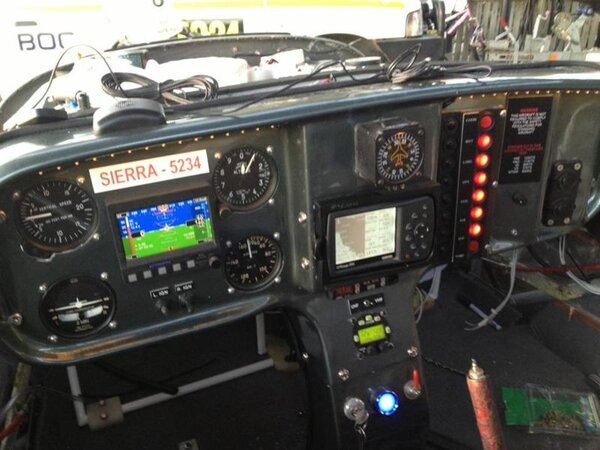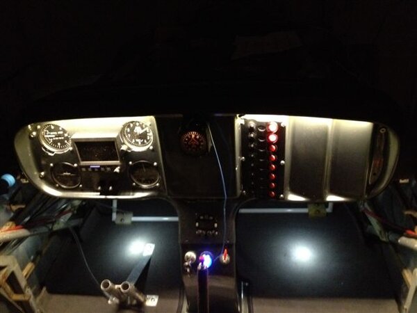 Furio - the panels on the right will be spare (I went with "the less info the passenger has the better"). I will be putting a plastic etched label with the usual warning sign and the VNE's etc there. (Off for pricing this morning - about $150 bucks to do all labels). The centre right panel will be fitted with a 12v socket and a 3mm audio jack for running iphone into radio to keep the missus happy. (Xcom runs 50% volume when intercom used and mutes when transmissions inbound). Its a Xtreme mini efis mounted between the steams. Below the GPS is the GME Tx3100 UHF (Came with the XCOM so I fitted it.... ) then you have the XCOM and below that is the key, starter and fuel. I also saw some good lighting strips in JAYCAR (both panel lights come as one strip and cut to size for under $20 bucks! But might need a dimmer??) - under 2 watts draw and good for warming up and preflighting etc whilst waiting for first light..... . I am also going to put them in the baggage area in the same circuit as the floor lights - for finding stuff in the dark. The GPS Air Gizmo dock should be here today so that will get cut and mounted making the panel pretty much complete.