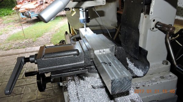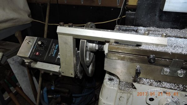 Before you know it a couple of months has gone by ... a friend pointed out yesterday that he hadn't seen any updates in the DooMaw log for quite a while. I have been busy though and taking a few photos along the way. I've had a couple of bandsaws for decades, one is the small tilt-up-and-down table and drop-saw type that are plagued with band-shedding problems unless you re-engineer them every few years, so I got onto that and it should perform OK again for the next while. I also have a large upright bandsaw that's sheer magic for cutting larger stuff or ripping up sheet material. The problem I've had with it is that work has had me moving around fairly regularly and I've only been able to use it when I've had 3 phase power, which hasn't been all that often. I've been intending to convert it to single phase for ages, it's only 1hp, so not a big issue ... or so I thought. I bought a nice shiny new single phase Chinese motor for about the price of a round of drinks, and set to work to remove the old motor. It was deeply buried in the bowels of the machine of course, which is in a shipping container in the sun in the back yard and in the middle of a series of heat-waves. None of the bolts was either accessible nor had been undone since it was made in the 1950s, so I lost a few kilos in sweat but prevailed in the end. I was then able to refurbish the mounting plate and belt tensioning system, and did the same for the back-gear arrangement while I was about it. Naturally the two motors' shafts were different sizes so I had to machine the drive pulley and I had misgivings about that because unless you get the bore right to within a couple of tenths of a thou a single phase motor will rattle the pulley and mount apart in a few seconds with the accompanying noise of a machine gun. My lathe is very small and the four stage pulley quite large so it (I) was struggling and you guessed it, I went oversize by a couple of thou. Then I had to devise a tool to broach a new keyway, I haven't done a lot of broaching so I didn't have much success with the first two tools ... I rewired the machine while I was about it, and then came the time to test run it. Sure enough - machine gun - why, oh why do they make parallel shafts? Tapered shafts work so much better! I finally solved the problem by providing the pulley with seven grub screws to lock it up and control the harmonics, got some new blades made up, greased the bearings and adjusted the blade guides and it's like a new one. I forgot to mention that all of this was in preparation for cutting up the material I had ordered to make the wing spar caps. The cap material is 6061T6 aluminium and its raw form comes as a rectangular hollow section (RHS) but I want an angle section which will also be tapered toward the wingtips, so I need to cut the RHS lengthwise into four, to create the angle pieces. I could buy the angle from an aviation supplier at about $60/m and I'd need about 18m so it would cost a bit over $1000 and I'd still need the bandsaw to taper the ends. By doing it this way the piece of RHS cost $90 and I'll have about 1/3 of the 6.5m length left over ... I'd no sooner had that job under control than I finally came across a small milling machine which I have been seeking for several years since I got rid of the previous one which was too large to move around regularly, it weighed about 900kg. Actually this one is a mill-drill but the largest of those that I've come across, not the rather flimsy thing that they usually are. It weighs 350kg which is just about manageable to move if you separate the table, head and base. The reason for a milling machine at this stage is to make the rather complex bits at each end of the struts which allow the wings to fold virtually in an instant, and lay flat against the fuselage sides rather than just swinging back the way most of them do. I could have had the parts made by CNC machine for about $2500 but where's the fun and satisfaction in that? Except getting flying sooner of course. And this way I get an effectively 'free' milling machine out of it. The machine didn't have a stand so I built that first, and equipped the rear of the stand with wheels so that I could move the whole thing around the workshop if necessary by slipping in a couple of long steel handles, wheelbarrow fashion. In the event it worked but it is still heavy enough that the handles need to be 2m long to be able to lift the front legs off the ground. There was going to be quite a number of days ahead spent machining and it didn't have a powered table so the next thing was to build a system to motorise it. I had a couple of old Baldor units lying around, one was 19rpm and the other 500rpm i.e one was too slow and one too fast, even though they are both infinitely adjustable with their electronic speed controllers. In any case it would be beneficial to use a couple of pulleys in the drive system, providing a simple way to disconnect the drive system when it's not needed, by slipping the belt off. Finally I was ready to do some work on real aircraft bits ... none of the time spent doing the above strictly counts as DooMaw build time, so no hours added to the build log this post. A pic of the milling table drive unit -