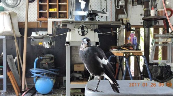 Still machining the same pair of parts. It gets more nerve-wracking towards the end of jobs like these because there's an ever-increasing investment in time spent on the job and it would be infuriating to have to go back and start again. It constantly brings to mind the words of my toolmaker 'extraordinaire' friend and mentor, the inimitable Barry Hughes, who, when he was working on something similar and was asked how it was going, would usually respond "it must be OK, I haven't stuffed it up yet". That investment in time and reluctance to have to do it again is also a good reminder of the flying creed which extols the virtue of maintaining concentration right to the end, or in other words, 'not going to sleep on the home stretch'. So my Australia Day was spent with another 9 hours on the milling machine making swarf. The pictures show - My regular companion, QA inspector and workshop foreman, he spends a lot of time standing on that stool on hot days because it gets him up into the breeze from the fan - and he can keep an eye on the work progress of course. The first side of one end with the caps tapered to reduce weight, the heavy web on the bottom is still there to stabilise it while the machining on the sides takes place. After all four sides have been tapered the workpiece has been turned over and the main webs machined off, the trench down the centre now goes right through. The same thing from a different angle. The first pieces that were made, the drilled pieces of 16mm plate, are inserted into the trench (which will be a clevis later, once the end webs have been removed), positioned with a spacer at the inboard end and then clamped, drilled and reamed for a series of 3/16" bolts. -