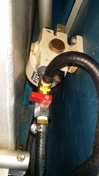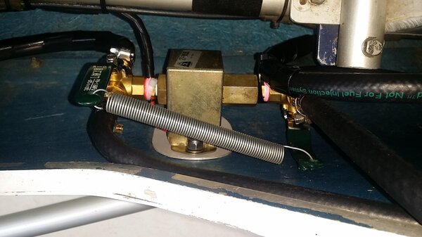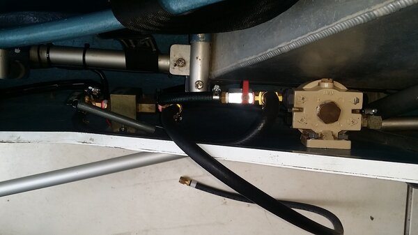 I think I've now solved the issue satisfactorily for my purposes, but it wouldn't suit everybody. First I bought one of these - from China for $8. It works very well and pumps a 20lt jerrycan in about 5mins to a head of 800mm. It uses 2 D cells and they supposedly last long enough to pump about 2000lt of fuel. the Chinese reckon they're safe for petrol as well as less combustible liquids and they're certainly very convenient because they only weigh about 400g with batteries so can be taken along for the ride if required. BUT - I was standing next to the plane which was parked next to the boat and pumping petrol and thinking about the little cheap 3V electric motor running madly with its cheap little commutator and sparking brushes when I imagined the whole lot catching fire and that would be the end of plane and boat and a painful way to go for me, so I decided it just wasn't a good idea. I now use the pump to pump diesel into the 4WD, and to drain the spa filter and similar things, so it was a good purchase anyway ... The next plan seems to be a lot better. I bought a couple of these - and some fuel tubing, 1/4BSP barbs and re-arranged the onboard fuel pump/filter plumbing like this - it ended up looking like the following pics if you can work them out - and so now I can open the shut-off valve, place both 2 way valve handles in the down position, dangle the suction pipe in a jerrycan on the ground (therefore grounded) next to the plane, switch on the onboard fuel pump and the contents of the jerrycan end up in the fuel tank. Once the refuelling is done I place both 2 way valve handles in the 'up' position and hook on the spring as a safety device to prevent accidentally closing one or the other of the valves, and I am ready to go 'up' flying. Closing the shut off valve at any time or configuration isolates the fuel tank as normal. The onboard Facet fuel pump draws just 0.6A under full load and the onboard battery is 18AH, so the battery can run the pump for 30hrs continuously. It takes 10 mins to pump 20lt into the tank and the tank holds 55lt so to fill the tank from empty would take 30mins but uses only 1/60 of the battery capacity, so there's no worry about flattening the battery. In reality I usually only pump 20lt or so at a time, it would only be more than that going on a longer trip when there is usually plenty of time getting prepared. Naturally when pumping fuel I need to stay around the plane so I have made a point of using the time to good benefit by conducting more thorough airframe and engine inspections than usual and it's paid off already, I checked the prop bolt torques between routine inspections and found they needed a little adjustment, and I took some slack out of the elevator controls which was immediately noticeable inflight. The pumping might be a bit slow for some people but it works for me and now avoids quite difficult refuelling because the tank access inside the fuselage is not easy. -