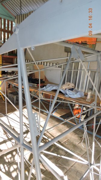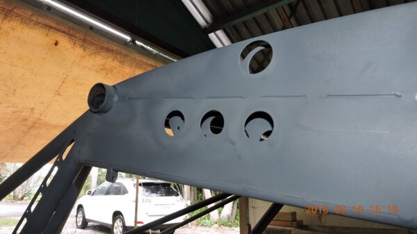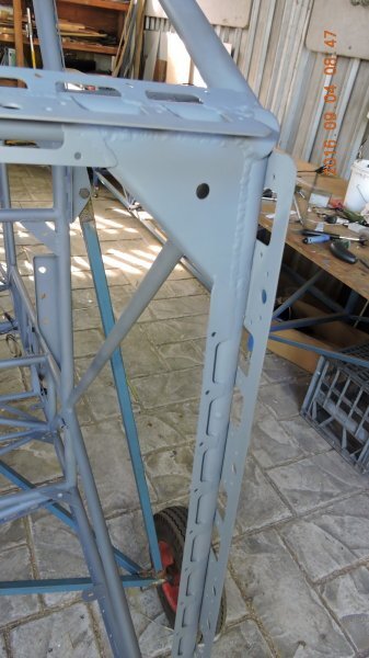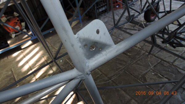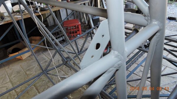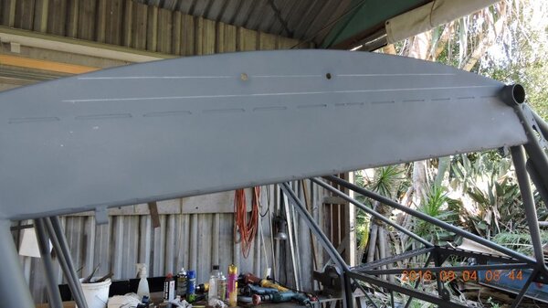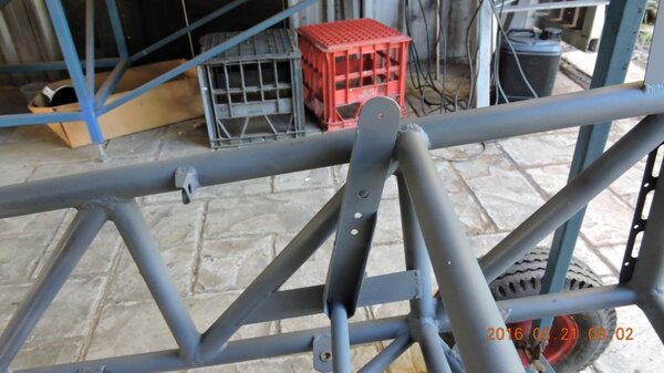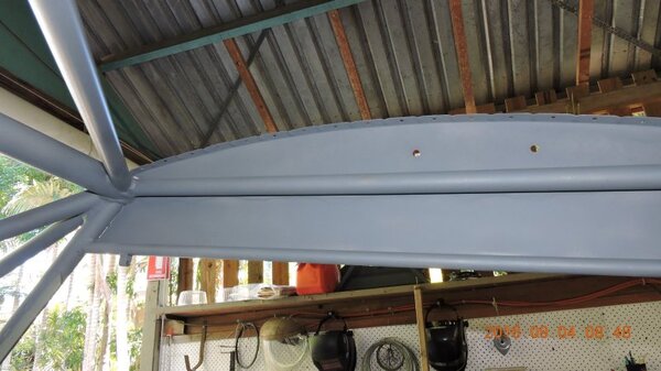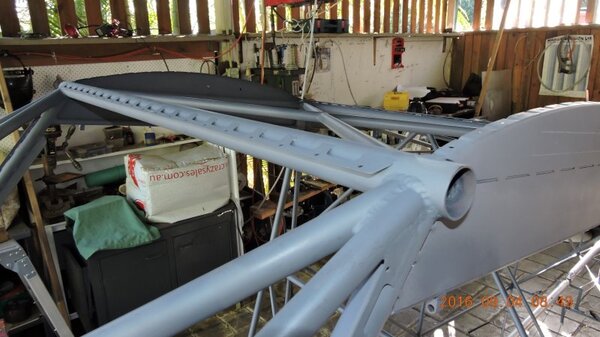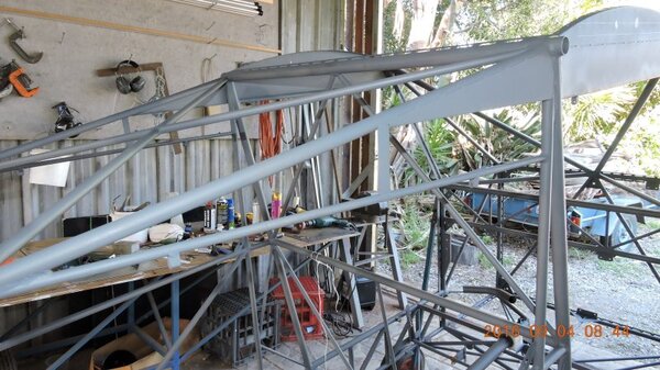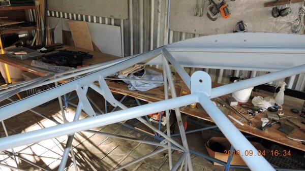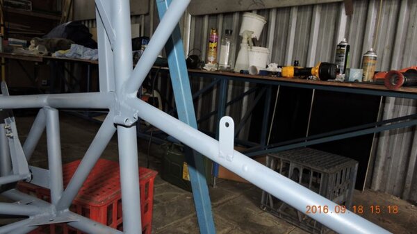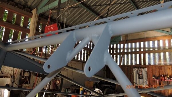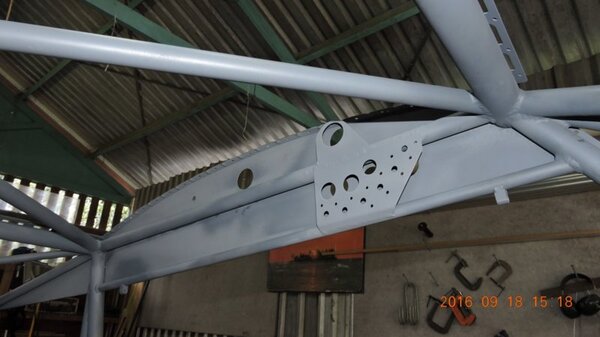 September 18th 2016. Thanks for the kind words fellas A notable milestone was reached yesterday when I completed all the welding on the main part of the fuselage frame. That means I can start the epoxy coating as soon as we have a fine day with low humidity. It will be a pleasant relief to know that the steelwork is sealed away from moisture and I won't have to be so vigilant about rust protection. More to the point though, is that once the frame is painted I can begin the final assembly of all the other components I have built along the way. The floors can go in, then the adjustable pedal assemblies, the control column, instrument panel, control cables with their associated pulleys, bellcranks and walking beams. It will really begin to feel like I'm over the hump and coasting downhill by then. Then, eventually, after I build a new carport for the 4WD so that DooMaw can take over the garage/workshop, I will be able to sit it on it's real gear legs instead of the temporary dolly wheels/legs it's on now. It has to be on these wheels for now because the real landing gear is too tall to allow the fuselage to be stored under the house when I'm not working on it. The next main structure I'm now finalising is the engine mount. Those of you who have built your own plane from scratch or from kits might be able to contribute here - how much side-thrust and down-thrust do your engines have? Each design is different of course, the amount of side thrust is determined by the power of the engine, the length of the fuselage (that's over-simplifying it but is close enough for our purposes), and most particularly the ratio of fin/rudder area above the fuselage longitudinal datum compared with the amount of area below it (again, in simple terms). Most of our planes are fairly conventional in their design, so we can make reasonable comparisons between them. At 100hp and with the fuselage length I have and with the approximately double the fin/rudder area above the datum, it would appear that I need between 2-3 degrees of right thrust. I moved the engine mount around in CAD and when incorporating 3 degrees it looks an awful lot. It's one of those things when building the engine mount though, that is quite important to get right or at least very close, because it's not easy to fix or adjust later. You can, of course, just add packing washers where the mount bolts to the firewall or at the mounting rubber locations but that moves the front of the engine sideways and then the propeller hub would be off-centre. Consequently the mount must be initially set-up so that the engine is rotated at the hub, not at the back of the engine where the rubbers are. Since the 3 degrees looks too much I reduced it a little, to 2.5 degrees and I can certainly adjust half a degree at the mounting rubbers later if I need to, without unduly upsetting the hub position in relation to the centreline of the cowling. But I would be very interested to hear from those of you who know at what angle your engines are set. I've also incorporated 1 degree of down-thrust to compensate for some of the nose's tendency to rise due to increased airspeed as the throttle is increased. I favour that tendency anyway in a plane of this kind, because when you increase throttle it's usually with an intention of climbing rather than just going faster - in a Spitfire it would be a different matter altogether ... (love your new avatar Marty ) So - yesterday's progress - first I added a couple of tabs to which I can later attach P clips and/or saddles to hold the throttle, choke, carby heat and cabin heat cables so that they don't flop around in the foot-well. Next I pressed a bend into the bottom of the flap controller plate I'd made previously, so that it sat flat against the cabin-top side rails that it was to be welded to. I drilled the centre holes in the cabin-top side plates in the location of the flap torque-tube and used them to thread a long 1/4" steel rod through, to position the flap controller plate in the correct alignment, clamped the controller plate and tacked it in position. After I'd tacked it in four places I found that it had moved! It was only about half a millimetre but it was enough to make the 1/4" rod tight in the three holes it passed through. The locations of the tacks were quite inaccessible even for a small grinder so the only option for removing the plate was to break it away from the tacks and since the tacks were quite strong it would mean substantial damage to the plate and probably having to re-make it. Since it was such a small amount out of position, I decided that with careful use of the welding order I would be able to make the natural shrinkage of the welds pull it back into alignment, so I changed the usual welding order so that I would complete all the welding on one side first, rather than doing some on one side then some on the other side, which you would normally do to prevent it pulling out of line. The process worked well and pulled the holes back into alignment. I also used a small holesaw to cut three access holes in the sides of the cabin-top plates so that I could get paint to the inner face of the flap controller plate, those holes will serve as inspection holes later and need only be covered with 100mph tape, since they will also be covered by the inner rib of the wing-root. A few pics - A couple of tabs for 'P' or saddle clamps to hold the cables Flap controller plate fuselage welding finished and ready for epoxy coating -