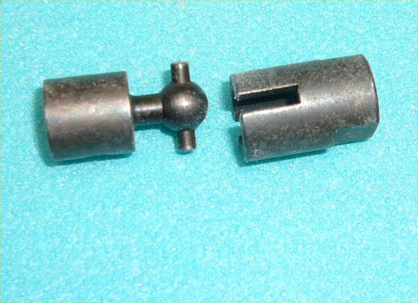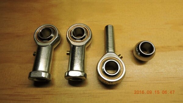 To bring the log right up to date ... I spent last weekend making parts. I think I'm down to fitting the last few bits to the fuselage frame then I can get the epoxy coat on. The timing has worked out well as far as the season and temperatures are concerned. I was rather optimistic four months ago when I bought the epoxy hoping to get it applied before the winter but at least now in our gorgeous Spring weather the temperature and humidity will be ideal. The coating is Jotun Jotacote 605 high-build high solids 2 pack epoxy which I have used before on steel and aluminium boats and it provides, in my mind, unrivalled adhesion and corrosion protection, and is extremely tough i.e. abrasion resistant and flexible, so it doesn't tend to wear off in high traffic areas or crack either. Like all epoxies it's prone to surface powdering/chalking if exposed to UV over long periods but the airframe is fabric and sheet-metal covered so that won't be an issue. Any areas that might be subject to constant exposure should/will be overcoated with a polyurethane coating. As far as the colour is concerned ... rather boring I'm afraid, I chose white. It's a little cheaper than the colours but that wasn't the reason. White shows up any defects better than colours. In event that you did get a weld crack or some epoxy coating damage, or corrosion under the coating for any reason, the associated rust will show up very quickly whereas on black, red or brown particularly, it takes a very close inspection to reveal any imperfections. Though I've learned a little about the coatings themselves, I'm far from being an expert on applying them, so if there are any folks out there knowledgeable about spray-application I'd be delighted to hear about tips and tricks. For the record I've bought a couple of new spray guns, really small gravity-fed HVLP ones with 0.5, 0.8 and 1 mm nozzles and 60cc and 100cc cups. I don't have a spray booth or any reasonable method of making one so I chose the tiny guns to be able to work closely on each tube and avoid as much overspray as possible. Back to the weekend of making parts - As described in my previous post, I had to work out the geometry for the aileron and flap connections, so I also made the templates for the bellcranks, control horns and the flap detente plate, marked them out on CRMO sheetmetal and started cutting them out and drilling them. Earlier in the week I'd been up to Brisbane for a meeting as part of my day job and for some unexplained reason I decided to take a diversion on the way home and return via my current favourite shop. I didn't have anything specific to buy, I just fancied a browse and I always get some inspiration when I have a look around that place. The shop is called Miniature Bearings Australia, and is an absolute Aladdin's Cave for modeller's, homebuilders and machine engineers. They stock everything from RC car and plane parts to bearings and linkages of every kind, small gearboxes, those bushings that you can't find anywhere, phosphor bronze rod (up to 3" diameter!) for making your own, balsa, carbon fibre, foam sheets, adhesives, wheels, ground silver steel shafting, keysteel of every size, you name it. (Click the link and just keep scrolling and scrolling down, you'll be amazed at their range of products that you just can't find anywhere else). They have a very efficient online shop too, for those unfortunate enough not to live nearby, and their online prices are less than their in-store prices, which more than makes up for the cost of the postage. Anyway, I digress yet again ... probably the only part of the DooMaw project I hadn't either worked out in CAD or had a good picture of it in my head, was the instant connect/disconnect method for the aileron and flap controls when the wings are folded or unfolded. It had to be foolproof i.e. must engage correctly and properly indexed without fail, and most importantly must not be 'sloppy'. I hate 'lost motion' (slack) in the control system, so the coupling method needed to be very precise without introducing tightness or stiffness, which I hate even more. Additionally, the coupling must permit a small amount of off-axis/angle drive, in this case it's the amount of the dihedral angle of the wings. So the coupling method was still playing on my subconscious but I was confident that the answer would present eventually. As it turned out the visit to Miniature Bearings was the catalyst. As soon as I saw the Dogbone Couplings used to transmit shaft drive in RC buggies and helicopters I realised I could adopt that method for the aileron and flap torque-tubes. A couple of pics shamelessly lifted from the net, thank you hot-racing.com and the other contributor - I worked out that I would need the ball part to be 7/8" (0.875"/22.23mm) diameter, to engage nicely with the 0.884" internal diameter of the CRMO end of the outboard torque-tubes i.e. with 0.009" (9 thou) clearance. The last time I did any ball-turning on my lathe was quite a while ago and I recalled that the set-up took me a day or two and to turn such small balls integral with the shafts would be fiddly and I'd need a fourth axis slider that I don't presently have. I quickly also gave up the idea of cutting or grinding them freehand to a profile template - if there'd been just one to do I would have, but four would take too long. Instead I decided to fabricate the dogbones from several parts and then spent a whole day searching the local bearing suppliers for self-aligning bearings and/or rod-ends that might have had pre-drilled balls of the right diameter. The local suppliers were hopeless - no stock, just catalogues - so I drove an hour each way to a supplier that I know has a good display stand of them. Vernier in hand I set about measuring their balls (so to speak) and was about to give up when I looked on the other stand and, amazingly, discovered that their Metric rod-ends had Imperial-sized balls and the Imperial rod-ends had Metric-sized balls. I 