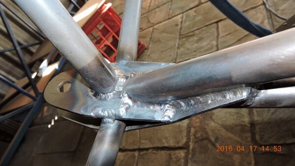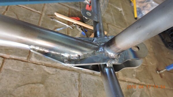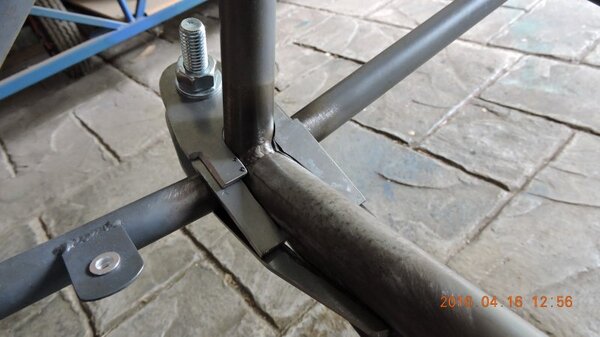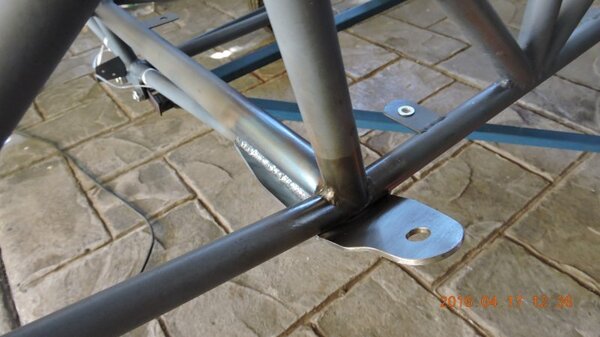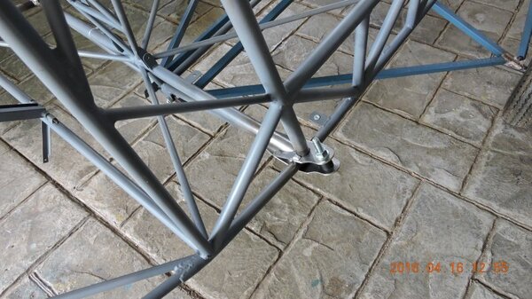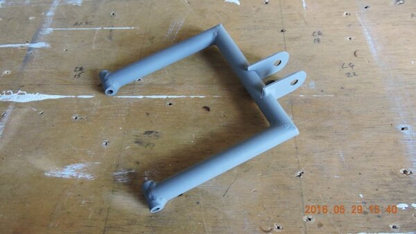 April 12th, 16th-17th. I've always had a bit of a 'thing' about strut attachment points. On any plane I've built I've seemed to consider them the most vulnerable to failure of the entire structure. It's probably a completely unreasonable concern but if it's there, niggling away at you it's a bit harder to relax and enjoy the flying. I'd pretty much stopped worrying myself over it and then a well-known brand of Aussie plane had their wings fold, and another nearly do so, due to corrosion in the carry-through, so I began to consider my fears justified again. Consequently, during the design phase of the DooMaw I had a close look at numerous steel-framed aircraft to see what solutions previous designers had adopted for their lower struct attachments. I saw quite a variety, some that looked like they could lift a tank and others that frankly gave me the willies. Anyway, seeing how incredibly light some of them are, and still manage to keep the wings in place, was an education in itself. It's not that their design is anything particularly arduous, it's easy enough to work out how much material is required to satisfy the tensile and compressive loadings at 6G plus a safety margin, it's more the problems that can arise due to corrosion, shock loading from landing and ground handling, and in my case, the completely different loading direction that's imposed when the wings are folded and the plane being trailered over rough roads perhaps, because the wings are still being supported by the struts when it's in the trailer. So - this time I wanted strut fittings that can take whatever's thrown at them, and to be honest that's why they're being added at this late stage of the program, because I've taken this long to decide exactly the best way to make them. Once the design was completed I just had to do the usual spray-paint templating, cut them out, make spacers on the lathe to clamp between them, drill and ream them, fit them up, grind the weld prep angles, tack and weld them. Sounds simple but took three long days. The lower plates are simply tuning-fork shaped and bent at 29 degrees so that each arm of the fork welds down each side of the very substantial 1.25"/32mm x 0.125"/3.2mm carry-through tube, then the top plate is made up from three parts where the fork arm is above it on one side and below it on the other side, this is to fit around the bend in the lower longeron. The pictures should tell the rest of the story, the assembly is mighty strong, I don't think I'll need to have any concerns about it ... Another 26hrs for the log, a total of 1034hrs so far. -