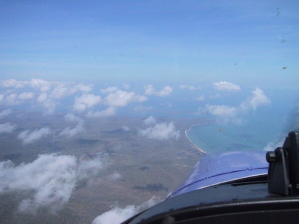 Horn has cross strips as you know, I don't think you'll have any problem regardless of how hard it's blowing, the air is smooth because it's coming off the seas whichever direction it's blowing. You mentioned about seeing New Guinea - the nearest Highlands are about 250Nm north of Horn. I went out as far as Badu Island but couldn't see anything of NG, mind you it was perma-haze while I was there. I've attached a few photos, the first two show the Cape itself, the next two heading towards Horn, then Horn airstrips, some of the cloud patches along the way, and Princess Charlotte Bay. Crossing the really high cloud street I mentioned earlier was a little bit nerve wracking so I didn't think about photography at the time but as you can see I was still up around 9000ft to clear the later ones which were a lot narrower and much lower. That trip was in September 2005, so the weather conditions could well be quite different at this time of the year. Also I was late leaving the Cape, that photo was taken just north of Princess Charlotte Bay and it was already 12:41pm. If you get a chance to catch up with the QANTAS-link or Coastwatch crews at Horn for a chat, they're a wealth of information about conditions up there, which are quite different from further south. I was surprised to hear what you said about only one strip at Burketown but I see from G Earth they've closed the 12/30 strip that I used to use. Later I was able to land under the powerlines on the roadside opposite the Burketown pub, but that was easier in a Jetranger than the plane of course ... and a lot shorter walk.