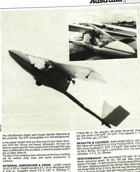 I quite agree Marty, it's hard to believe it can happen, but it can, and does, even to the best of us. Sander Veenstra is a name well known to anyone who was around the ultralight scene in the late 1970s and 80s. Sander was probably the most prolific builder of planes in Australia. He had a workshop that I spent a lot of time in, at Officer, near Berwick to the East of Melbourne. By around 1983/4 he had outgrown that workshop and he moved to Tocumwal for a short while then purchased a tract of land that had a private airstrip and large shed at Nagambie, near Mangalore. The demand for his planes was strong and for some time he had been building planes in batches of six and was working all hours, both to meet the demand, and to pay the substantial debt he'd entered into. Initially he'd been building planes that were most like motorgliders, they had a single wheel, inverted V tail and a relatively small 18hp direct drive pusher engine. He was achieving glide ratios around 18-20:1 and he'd attracted the attention of some notable people, Bert Flood, for example, owned a number of Sander's planes and Sir Jack Brabham was another keen participant. The ultralight market, however, was moving toward more conventional powered planes and the design of each of Sander's new batches were morphing that way a little at a time. By the time of his sad event his planes had a conventional two-wheeled taildragger landing gear and the V tail was now upright rather than inverted, they were a very slick little machine called the Farmate (or Farm-mate) - that was the eleventh production design and he'd built a total of around 50-60 planes by that stage including two two-seat trainers, a single engined tractor design and twin pusher called the Tardis that's still around, I last saw it not too long ago at Watts Bridge in Queensland. I don't know all the details because I'd moved away from the area shortly before the fateful time, so the rest was told to me by others. He had almost completed the latest batch of six when he ended up making a change to the control system. I'm not certain whether he had decided to change the whole batch, or whether he was upgrading a plane that came in for servicing to the current spec, either way the design change moved the engine mounting a little, repositioned the control mixer for the V tail and, if I understand it correctly, also moved an overhead bellcrank for the aileron pushrods near the mainspar mounting. Sander was tired but always gave a comprehensive test-flying regime to each plane before delivery to, or collection by, the customer. The changes had delayed the completion dates and he was in a hurry to meet agreed delivery times. He fired it up, completed his taxi and controls checks, applied full power and took off, climbed straight ahead to 150ft or so and, confident pilot and person that he was, he rolled hard into a left bank. Or rather he tried to, the plane flicked into a spin and impacted the ground more-or-less vertical, it was all over in a second. The accident investigation was straightforward, Sander's modification had reversed the sense of the aileron operation and he, talented and meticulous as he was, hadn't picked up on it during the conversion(s) nor during his pre-flight controls check. Even though he was a long-time glider pilot - and glider pilots are very careful with the 'free AND correct sense' checks, because gliders are assembled and dis-assembled so frequently. Those who knew him well put it down to hurrying due to tiredness and financial pressures, but it's still astounding to think someone so experienced and knowledgeable could have missed that issue for so long, he would have been 'around' the matter for days while doing the work on them. We lost a very talented designer/builder that day. -