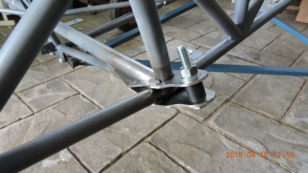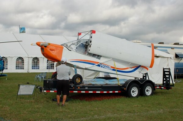 Yup, the wing folding on DooMaw is rather more complex than the single-plane type of folding that the Kitfox and similar have, because when they're folded DooMaw's wings lie flat against the side of the fuselage (a bit like the Grumman Avenger, but even more so), consequently there's two axes of freedom and rotation at the top strut fitting and two axes of freedom at the rear spar attachment. Because of those multi-hinged points, and because they're not arranged as a star-fitting (like a universal joint) but are offset hinge-lines, the lower strut hingeing wouldn't be aligned with the others even if it was pinned vertically. I was quite intrigued when I came across M61A1's "The Mistress", which is where I first saw this very clever and useful hingeing arrangement. I've tidied it up a bit for DooMaw but unfortunately I still wouldn't be justified in claiming the design as my own, even though it will now be the truly 'instant' wing-folding method I've always hankered after. The other two attach points are a little difficult to describe at this stage so I might have to leave that until I have modelled it in CAD and can show the actual components in an exploded view, but for the meantime here is a picture of The Mistress's lower strut attachments to be getting on with, they should show how DooMaw's swivel alignment will be achieved, it has the same effect as yours on the Stollite - the third pic shows The Mistress in her trailer note that the wings are on the plane, you can just see them folded flat down the sides of the fuselage, and they're still attached to, and supported by the struts. This type of hingeing provides two massive benefits when compared with the type used on the Kitfox and similar - you can still walk around in the trailer because the wings don't take up its full width, and your wing-chord width isn't limited by the need to get it into legal roadable dimensions. -
