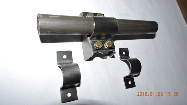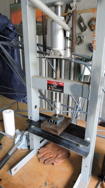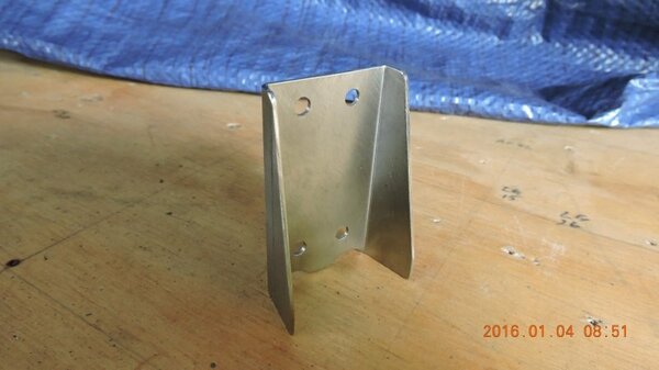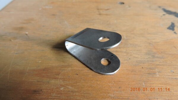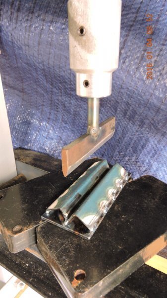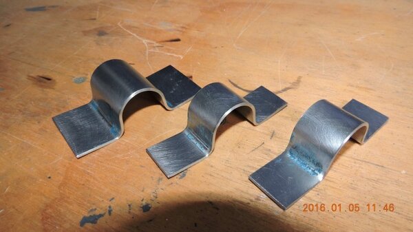 Jan 2nd - Jan 5th 2016 A bit of time spent welding in the parts I made previously, shown in post #81, then it was back to making more parts. This time it was brackets, and rather tricky ones at that. I've been giving thought to them for some while because I couldn't think of an easier way of achieving what I need, i.e. easy removal of the entire tail-feathers if that should ever be required. On the surface the brackets look simple enough. However, since they don't have any available adjustment, and when they're bolted up they determine the alignment of the horizontal stabiliser, they have to be made and installed absolutely accurately. All the other bent brackets on the fuselage have been quite simple and not overly critical so I was able to just clamp them to the edge of a part of the workbench where I have provided it with a gently radiused corner, and judiciously fold the plate with taps of a hammer, back and forth over the length of the bend to prevent stretching the metal and making an inadvertently curved plate. The CAD screenshots below show four brackets in grey colour holding the front and rear tubular spars of the HS. There is a vertical bracket with two vertical folds in it and three curved brackets like the saddle clamps that are used to hold electrical conduits to walls, or plumbing pipes to masonry. Unfortunately I couldn't use those kind of commercial items because they're generally made from cheap material rather than chromoly, and in any case you'd never find one to fit exactly - The brackets are made from 1.6mm/.063" chromoly sheet and it's quite a hard material to bend without the proper machinery. If I had a brake press or sheet-metal folder I could make the vertical bracket easily enough, but I haven't, and I didn't want to go to a metalwork shop for single items, it's far too time consuming (well ... so is making the tooling yourself ... but anyway) and it's far more satisfying to have made anything you can on the project, than to have it made for you. So .... I made myself a tiny version of a brake press to use in my toy 6T shop press, and it worked a treat. It's only 100mm long but will also serve to make lots of upcoming brackets I'll need while making the wings. Below are pics of the little brake press, and the vertical bracket I made with it - Emboldened by the success of that I had a think about how my old mate Bazza the toolmaker would go about making a press-tool to make the saddle clamps. At first I imagined making the main curved part in one pressing action and then having a second forming tool to make the return bends but I couldn't think how to make them accurate and consistent. Then it occurred to me that every press-tool that Bazza made did the entire job in one action. Some of his tools used to shear and press very complex shapes in one action, straight from sheet material fed into it. I recalled that his watch-word was 'control'. Every part of the tool must prevent the material from going anyway it shouldn't go. If you were folding a part, the material just beyond or behind the fold would always want to react outwards as you folded it, so you needed something pressing against that area, resisting that reaction, and that support had to remain throughout the pressing process until the shape was complete. That often meant having parts sliding against each other as the top and bottom tools closed into each other. Armed with that knowledge the tool design for this became relatively simple, and would have been simpler still if I'd had a milling machine to make it with, but I had to settle with fabricating all the bits and welding them together and a bit of flap disk relieving of them at the end. It took a day and a half, a bit expensive in time for a small step forward on the project, but the main thing is they came out very accurate so I am happy with them - Another 37 hrs - a total of 601 hrs so far. -