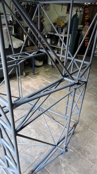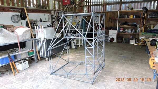 I haven't had a lot of spare time for the build during the last three weeks, just a few hours here and there, but today I did get the cabin welding finished and, except for the strut attachment points, wire-brushed and painted all the welded areas with primer. That means the next stage will be to fit and attach the rear fuselage sides and then the rear fuselage cross-members and bracing. Another 28hrs for the build log, making 392hrs in total, and here are a couple of pics. If it looks a bit odd that's because it's sitting on its tail i.e. the firewall is 'up' -