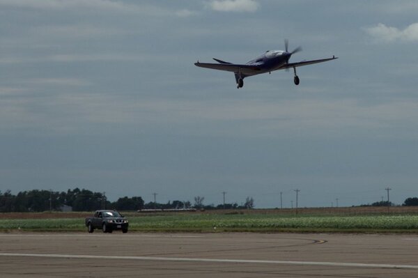 Bugatti has flown! Sadly the Livestream video didn't show live as they lost internet connection, but they will post the video shortly. The Blue Dream flew "beautifully", as expected with good control response but they had a slight mishap after landing when a brake failure caused a run off the runway into soft ground following the rain and the result is damage to both props and the spinner. Hopefully it's minor and can be rectified quickly, and fingers crossed there's no damage to the gearbox or drivetrain. Scotty posted the following on the Blue Dream Facebook page - "Bugatti 100P First Flight In keeping with our Full-Disclosure policy, here is my summation of our first flight experience: We intended this flight to be limited to a short hop down the runway to check power required/power available and to check control responsiveness in all three axes. Preflight preparation and before-takeoff checks were normal. Takeoff was normal and at a predetermined reduced power (80%) setting; takeoff roll was 3000 feet and I became airborne at 90 knots. I climbed to 100 AGL to check power and control responsiveness. The plane responded as expected to all power changes and control inputs. Maximum airspeed was 110 knots. I reduced power for landing but the airplane floated much more than we anticipated. I landed further down the runway than planned but with sufficient distance to stop the plane. Unfortunately, I lost the right brake and the airplane departed the left side of the runway at slow speed. Due to heavy rains the night before, the ground was soft and the airplane tipped upward on its nose, damaging the spinner and both props. Such is the nature of flight testing a new design. The relevant news is we successfully flew the Bugatti 100P for the first time. The plane flew beautifully. We’ll share more photos, video, and data with you in the coming days." Here is the first airborne photo, shamelessly ripped off their Facebook page - -