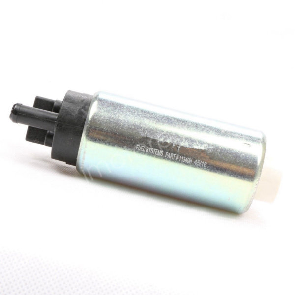 This would appear to be a good, lightweight and cheap option at $25 - 255LPH FUEL PUMP Set Fits Falcon BA BF 6CY XR6 Turbo XR8 V8 FPV GSS340 In-tank fuel pump normally for fuel injection - at that flow rate it would transfer a 20L jerrycan of fuel in just under five minutes. Just kit it out with a length of 8mm fuel hose with inline filter, a pair of wires with crocodile clips to connect to the battery with an inline rocker switch - and dangle it in the jerrycan of fuel. The pump weighs only 360g so the whole setup would be under half a kilo ... Edit - or if five minutes is too slow for you, you can get a 450L/hr pump for $70 that would transfer the jerrycan of fuel in under 3 mins. -