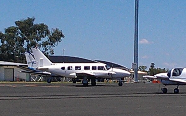 3. I appreciate this photo is a bit grainy but have a look at the rego on the side of this Chieftan taxying at Roma recently! It is the dirty smudge at the base of the fin - the underwing was not much better. It is about time that CASA started looking in their own backyard before having a go at the sport end of the market. Be real interested to know if this would get past the RAAus audit!!
