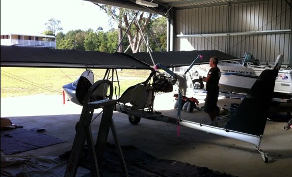 Just your typical weekend; An hour banging circuits with a student in the Foxbat (Landing 30 grass YTRE, my place on the right of the strip) Steer my resident builder in the right direction with her project. (she's nearly finished her second wing, and about to start the second flaperon) Jump back in the 'Bat and fly over to a mates place and spend an hour or so assisting the re-assembly of his recently purchased, fully restored Drifter. (virtually brand new!) Fly back home and pull a few more bits off the two stroke Lightwing that I'm trying to finish an engine change on Knock off for the day and walk back to the house for tea, and read the latest at Recreational Flying.... -