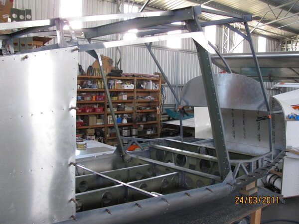 7. Note to Ole: We will need to extend the door width on my Hornet as I no longer think my head will fit through the existing opening. Thanks for your kind words folks. Big kiss right back at ya Camp David. lol The fuselage is a semi-monocoque design and attaches to the rear of the main frame via longerons and stringers all locked together with frames and webb braceing. Any one who has built a steel shed will know how the frames will wobble all over the place until you start screwing sheets onto it. If your scared of heights like me, putting the roof sheets on while the whole thing under you wobbles all over the place is quite a job. But I was supprised with how sturdy the fuselage was before the skins went on. Just on the webbs. Another bend in the folder and you make the webb strong in tension and compression. No extra weight but given 4 webbs at one point twice as strong. Another new thing learnt. At the tail there are 2 bulkheads to mount the 2 spars of the vertical stabilizor. The frame is clamped to the bench and checked for square before the side skins are attached. Once their on there is no way this frame is moving. Roll the frame over and the bottom skin is then attached. The two rounded bottom corners are rolled in and attached. The rounded corners of this fuse add that much extra strenght to the whole structure. The tail that holds the vertical and horizontal stabilizor is double skinned with doubler plates on the outside and extra diagonals inside. The mounting points for the tail wheel are chrome molly and bolted to the frame. Inside all painted and then fit the top skin and corners. [ATTACH]773.vB[/ATTACH] [ATTACH]774.vB[/ATTACH] [ATTACH]775.vB[/ATTACH] [ATTACH]776.vB[/ATTACH] [ATTACH]777.vB[/ATTACH] Now that didn't take long:rolleyes: Cheers Scotty