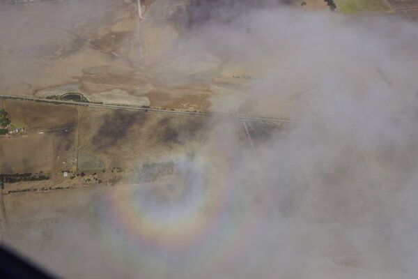 5. Flight with my son in law this morning from Murray Bridge down to Milang, Clayton and back. Smooth flight and only a few minor bumps landing. The vines of Langhorn Creek. Circular rainbow with the plane shadow in the center. The morning sun over Lake Alexandrina with the Murray River inlet.