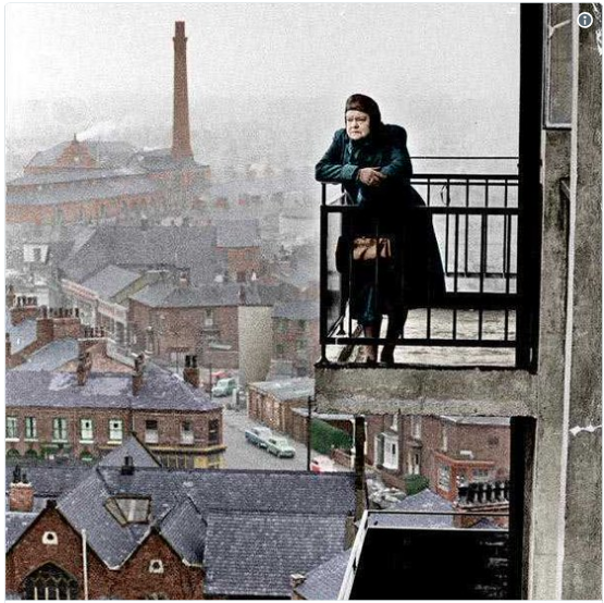 Wouldn't argue with you Sir. As I said in the original post, I picked this photo from a Twitter site, of a guy who likes OLD photographs.. . .I will send him your thoughts on this ( with your permission of course ) He got the Airfield right though,. . . I mean the one quoted by Peter, ie RAF Kirton-in-Lindsey in Lincs. Simon's site is Tunnelbreeze.com, Twitter Only from what I can gather,. . and he gave me permission to copy / paste the picture. He has an 'Aviation' section, which I will check out later. I briefly saw one of those it was a Biplane taken in the 1920s - 30s with a bloke and a Lion cub on the wing. . ( ? ) captioned 'Flying Circus' He has an eclectic taste in Photographs, Anyone recall the Brit TV show 'Coronation Street' in the seventies ? It was on TV when Wifey and I lived in Melbourne. . .although the plots were around four years behind the UK. . . Again, it ha been digitally colourized. . . Violet Carson ( AKA Ena Sharples, overlooking Old Trafford - Manchester , circa 1960 ) Phil. -