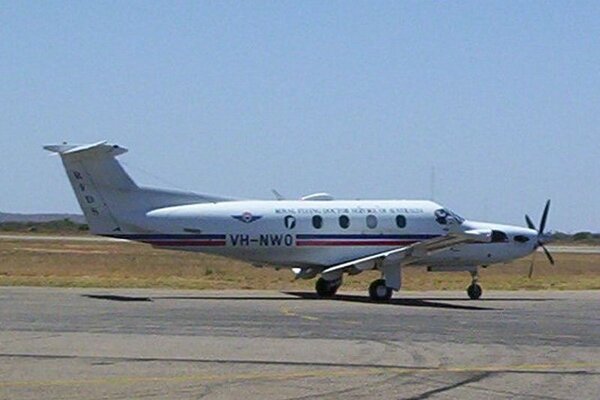 8. RFDS Photo taken back in Feb 2004 at YCVN,one of RFDS new pc12 vh-nwo [north west operations]. 2nd photo vh-nwo taxing to rwy04 with customs landing [it was a windy day] and a chopper in the background, just kidding. Actually its a dragon fly in foreground.