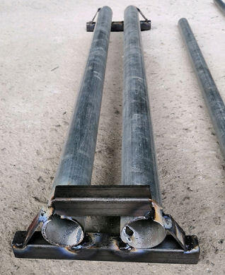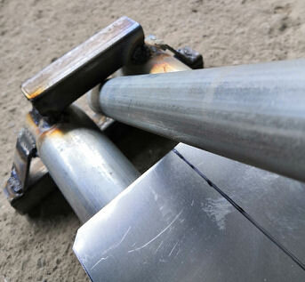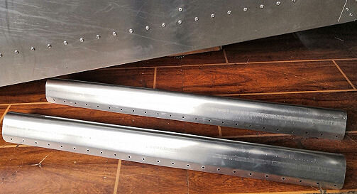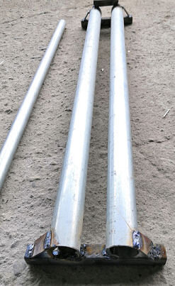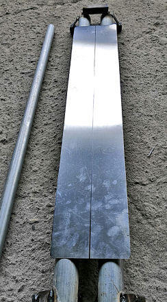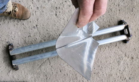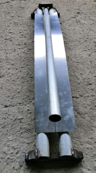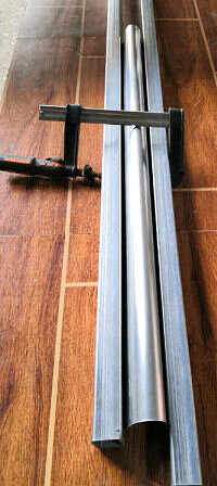Today I made a quick rough as guts jig from some scrap laying around to help with some leading edges 2 pieces of 50mm/2" pipe, some 25mm/1" square and some gussets. On the right is a piece of 32mm/1.25" pipe. There's about a gap of 38mm/1.5" between the 50mm/2" pipes. Note the end close to camera has a bar across the top, I call it the end with the bar across the top. Note the other end does not have a bar across the top. I call it the end with no bar across the top so as to avoid confusion. I was considering to call this end Rupert, but finally decided on the former. Center your work over the pipes. Hook your 32mm/1.25" pipe (or smaller if you want sharper radius) under the bar. Lever the pipe down all the way through the gap, I put a 25mm/1" tube inside the end for leverage, and once down all the way through, I stick another in the other end as well to push that one all the way down. But you need to hold the first tube down - you may need another person to help depending on length of your workpiece. Note that the lever pipe has no name. I managed to lose the picture of the workpiece forced all the way down, so here's a Gay Spiderman dancing ... So when you remove it, it will springback a bit. You can get a bit more bend by laying a few sheets of newspaper or cloth to tighten the gap some. It's still a little big here. So to pinch it further, a couple of anything suitable, square tubes here, and clamp then together, removing and checking as you go. Make sure you tap the workpiece down with your hand s you go as it can pop up in one corner as you squeeze. You still here? What, you think there's more? What do you expect for nothing. -