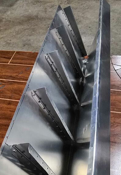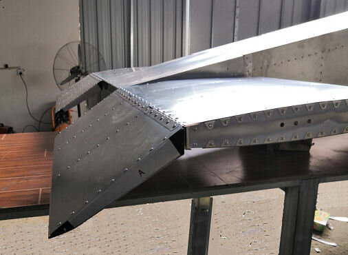 It's all give and take, not a problem for me :-) Some supplies got through to me yesterday, so I'm back into it. I didn't have any piano hinge left that I thought I did (well I can't find it in the factory anyway) and as simple as no titanium oxide to spray between the assembled parts for ant-corrosion is what was stopping me the last week and a bit. Yesterday I hand made (laser and sheetmetal shops are closed of course) the VS lead edge fairing, if for no other reason than for the people who keep asking me if I'm leaving the lead edge flat like the 3D drawing, sigh ... -