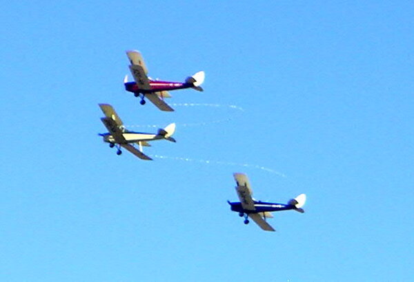If my hat wasn’t blown off, I would take it off to the three pilots of the Tiger Moths that flew around for at least half an hour with bunting attached between their ‘planes.