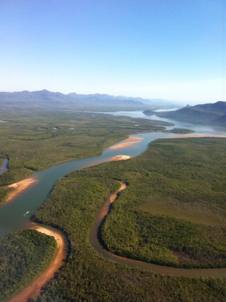 18. I convinced the good lady to come for a fly this morning. A westerly until about 10.00am then an hour to commence the normal easterly that we have this time of year in the north. We flew over the edge of Hinchinbrook Channel to Forrest Beach outside Ingham then back home again. There were radio calls from Mission Beach Sky Divers as well as some calls from Starke field near Townsville so I figure there were a few planes out enjoying the weather. These were taken with a simple iPhone 4 and I am very surprised at how clear they turned out. Mouth of the Herbert River. Hinchinbrook Island in the background Macknade Sugar Mill ? on the Herbert.