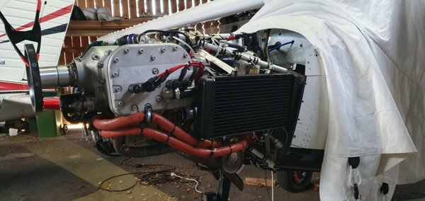 They drove back up to me and helped me assemble the aircraft again, new oil pump was really good, instant oil pressure. They wanted me to change the flow of water so now i have a thermostat directly after engine, the thermo bob is gone and in came a simple one, thus making water flowing through the radiators and not shock cooling the engine when thermostat opened, when rerouting the water i no longer got flow into the cabin heater so im moving the hoses around for that. Also another weird thing is that now after water is cooled, the cylinder coolant inlets are positioned right by the coolant temp meter, so i get 20C less measured at efis compared to the ecu´s water temp meter that is positioned after engine, i told them i dont agree on the position of efis coolant temp meter, i'm now installing a inline water meter after the cylinder outlets so i can read same temp as ECU/thermostat, this worked better when i had the thermo bob.