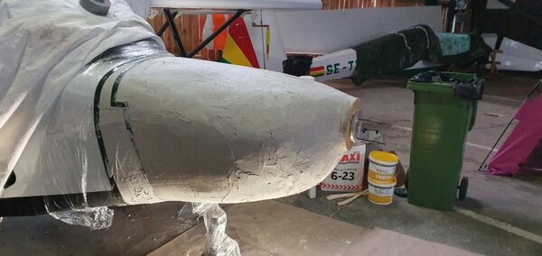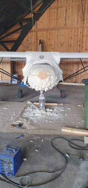So 1½ year since last post, 2018 passsed, with a flighttesting passed and November 2018 i got my flight permit. Also, August 2018 i visited Kyle in Brisbane and got to meet his Girlfriend, thanks for letting me meet her Kyle. Ive been out visiting friends. And a new year has begun. And i have now Lengthened the propflange 3cm and started with making my own cowling. I poured foam over it and it looked like this. And then i sanded it down a bit to get a feeling, and i like it allot more than the old one that was a compromise. The Compromise cowl. Have a great day.