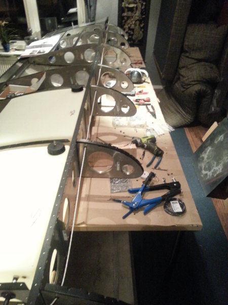 Its 0100 and im using a rivetgun to close up the trailing edge on my wing, suprizingly no neighbours have knocked on my door yet:bash:. Also closed up leading edge today =)