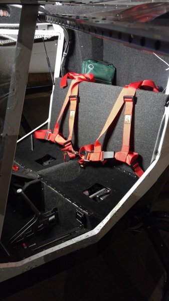 2. Seatbelts in And some markings. Bottomplate has camlocs, And som stripes. And finaly, first engine run, did not get any good readings on oil pressure so have to look it over.