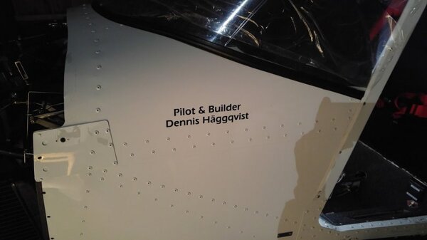 9. So i had som issues with my fuelsystem, it was a hoseclamp for a firesleeve that blocked the incoming line, so now i have bought two new fuel pumps extra for no need and moved sensors around on the fuel line for no need, allot of work. I took a baloon to leaktest the pitot and static and all is well, 184 km/h in the hangar is nice. I also mounted those two consoles where i think they are supposed to be. Also i copied Mark Kyle on his Builder pilot sign.