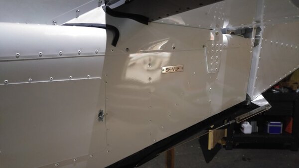 20. So i weighed the plane and made my goals. I also got the elevator autopilot capstan installed, also got the tension measured Found it hard to install belts after i got the carpet in. I hade an argument with the door and wing closure, misfit so i had to modify the wing closure. Anyone knows where these two parts fit? Nice to have doors. Got some more carpet in and some stickers, im no pro at this The aircraft itself will probably work fine, i have done my best with my tools and knowhow, im certain people could have done this allot better, ive learned allot on the way, what to do and what not to do, one is that do not let tape sit to long or it will rip off your paint. For now im doing the Pilot operating handbook, i applied for registration that seems to take forever, need it before applying for everything rest, but most of all i wish it could get warmer outside, -15C dosent help...