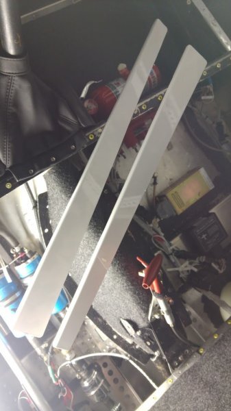 15. I think i found out where they are supposed to fit, they cover the parachute bridles in the roof against the wing. I felt really dumb yesterday when i tried to circulate fuel but pump did not deliver, so i sucked and nothing happened, until i noticed wrong polarity on pumps, anyway fuel taste awful. It seems i have ordered wrong pumps, they deliver 140L/h@4bar, i need 120l/h@3bar, how great is that, i took bosch article number and crossreferenced it to a another brand and got wrong, so now i got 2 new genuine bosch pumps on its way. Installed a halon fire extinguisher . Also got my personal manufact sign up. Handbrake is finaly up, a nice piece of mahogny. I got the 3 atch lock fitted, cant really understand, it wouldnt let me get the back side of the door all the way in? Closed up the wings and installed the tank breathers. The radiator opening got some nice cooling guidance.