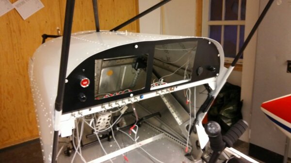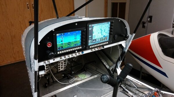 Ok, all electronics done so far i can now at home, autopilot works fine. And I've started preparations to get the aircraft out. Getting the electronics to work properly is very, hmm, educational. Few weird errors like. By using two different microswitches with different resistors i get a value that i program into the efis, now the efis can warn me when I have flaps down when going to fast, but when the rs232 data link from my vertical power circuit breaker is connected and switching on the main power from backup, values for flaps are reset. It's like when your standing in the shower and want to turn it on but instead the coffee machine on in the kitchen starts, whut?