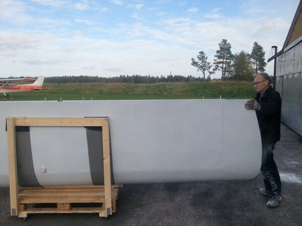 Ok so i got the Aircraft primed, what a load of work, not to be kidding of, many days, and i had quite a drive to get there, 120km one-way. First MEK/thinner the whole aircraft, then rub it with Alodine 1201. I used Randolph aircraft Coating, probably not the cheapest but damn it looks good, three thin coats to form one covering coat, first try was a bit thick but the rest was perfect. I must give my gratitude to my Friend Hans Marchner for letting me sneak in my aircraft in his paint booth when he had painted his, so i helped him finalize his plane and then he painted my stuff in rounds. So on Thursday im leaving the fuselage at a Pro painter to get it painted within 2 months. I also decided were to put my Dynon Pitot.