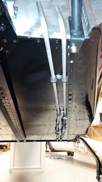 Just allot of small tinkering before engine arrives, yikes theses small things take time...... New fuellines for the circulating injection system. Braketubing. Also got the Efis up running, to my surprise i had to open one up and solder the SD card reader back inside,, also putted a AGU fuse close to the battery. Ropes for parachute come up here from the main carriage wheel spring, its looping. Happy holidays...