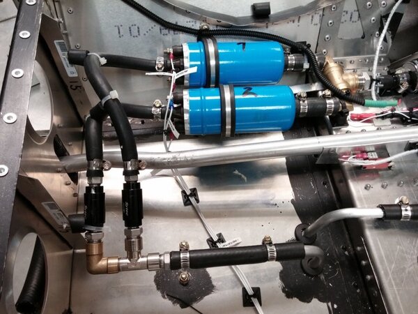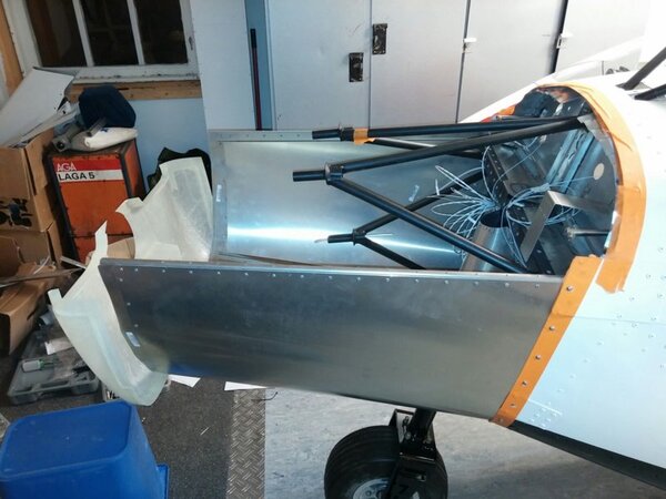 Ive been working with the Fuselage after the painting and restoring and doing changes. I also got the Engine mount and Cowling, to my surprise when unpacking everything the cowling was just sheets of metal and of course icp didn't send any instructions and they even promised to send me them by email last friday. Engine mount wasnt a clear fit either, dont know if it has to do with is a jabiru2200 mount or something, but i think it leans allot downwards, normal? I have a problem i need suggestions, since im having a Injection system installed i must have a circulating system, 12o Liter/H (2L/min) this means i cannot use the original return to the wing since its only 3mm inside diameter in alu tubing. I've talked some with the engine manufacturer and what we come forward with was to make a returning fuel pipe right beside the admission line back and connect it to the top of the reservoir, thereto also disconnecting one wing tank and use a T-joint for the wing tanks into the reservoir. So i need to put the Fuelpump underneath my seat, ok. This made me think what he says here is that allot of air comes back in the return line, how does that air get out? return via the wing tank tubes? doesn't that stop the flow down to the reservoir? vapour lock? do i need to worry? My only solution that i thought of is to use the original return line from right wing down to the reservoir and make a new plug in the reservoirs top?
