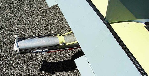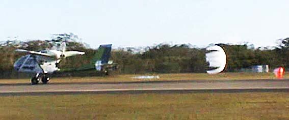 Called a "Spin recovery parachute" (What a surprise). Essential kit for a test pilot. Ever think about how you'd bale out of a spinning aeroplane? This is one bit of gear that really MUST work when you need it. That NASA one was obviously made before the days of low-porosity parachute fabric; one like that nowadays would oscillate violently. We've had to go to the cruciform style (like a dragster braking parachute) to get a canopy that will not oscillate. This is one of the things the Australian flight test fraternity had to learn the hard way. The canopy size has to be correct and the distance it is behind the aircraft is also critical. Notice that the one on the Seeker and the NASA one are very similar in both these regards. You either get this right or you're likely to be dead. Also, the size of 'chute required is too big to allow the aircraft to be landed with it deployed; the jettison mechanism is equally as important as the deploy mechanism. It's a bit of equipment that you hope you'll not need; that NASA test pilot was intentionally taking the aeroplane to an unrecoverable flat spin, relying solely on the spin 'chute. Now, how far do you really want to go in experimenting with a VG installation? -