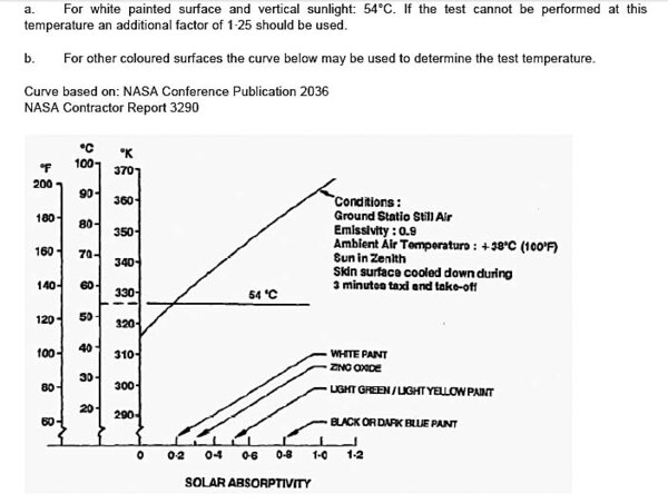 The Jab is white for a reason. Ever hear the term "glass transition temperature" for an epoxy resin laminate? I suggest you look it up, before you add much in the way of a colour scheme. The Jab is made using LC3600 resin. The structural testing was conducted at or slightly above 54 C, because that's the temperature considered necessary for a white-painted surface in full sunlight on a nominal 37 degree C day at sea level. AMC VLA 613 © Material Strength Properties and Design Values (Acceptable Means of Compliance) Test Temperature – a. For white painted surface and vertical sunlight: 54°C. If the test cannot be performed at this temperature an additional factor of 1·25 should be used. b. For other coloured surfaces the curve below may be used to determine the test temperature. Curve based on: NASA Conference Publication 2036 NASA Contractor Report 3290