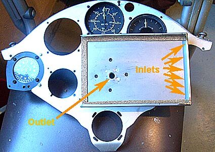 That's how it's arranged - see photos . The installation is complicated by the fact that the panel you see here is shock-mounted behind a fascia in the aircraft that is structural; so the ipad tray has to be mounted on a stand-off from an existing instrument hole, such that when it's in the aircraft it stands about 6 mm proud of the fascia. As you can see, it is really a squeeze to accommodate it in the panel. In view of the upper temp limit of 35C, I may have to reverse the arrangement I intended and blow cold air onto the back of the ipad from what it shown as the outlet; and that supply may need to run through an insulated container holding a freezer brick. Glider cockpits can get very hot on the ground, so the ipad goes into the tray as the occupants climb aboard; but the cabin air temp may be too high to provide any useful cooling at low altitude. The lid of the tray is not shown in those pictures, but it opens to act as a shade hood. The 12 V charger I have is Bauhn 2.1 amp device; it seems to be the same Belkin charger, re-branded by ALDI, as Apple were recommending at the time. It's a cigarette lighter socket type, which I dislike, but I could not find anything more apposite at that time; maybe there's something better now (suggestions gratefully received). I'll be using a filter network to minimise the spikes going into it; the engine is a 582, and it's across a lead-acid battery. The ipad is a basic 16 Gb series one Ipad mini, and I use a BadElf Pro bluetooth GPS. The only application will be Ozrunways. -