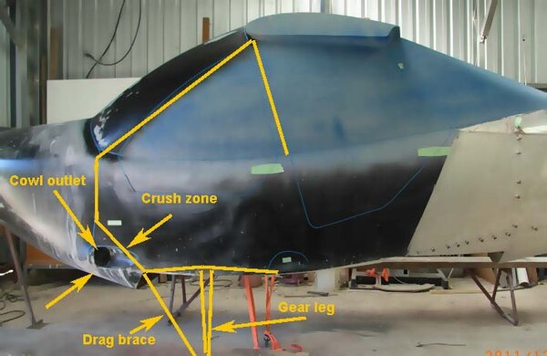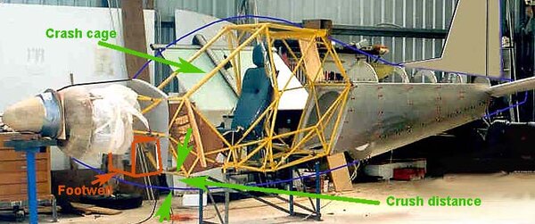 Some of you may find the attached of interest. The third image is a photoshop drawing, but the real thing looks very much like that. It has a faired-in cargo pannier underneath the crash cage, which can (provided it's not loaded with hard objects) provide some eight inches of crush capability. The pilot's footwell also contributes to the crush capability; the rudder pedals are designed to move rearwards as it crushes, carrying the pilot's feet with them. This fuselage has the major features identified in the thread. I don't see how to achieve more than this without the design getting silly. -