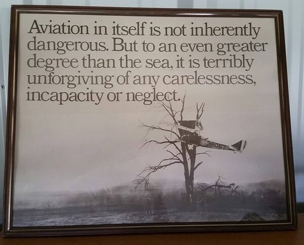 Dangerous activity? Risk management principles say that the Risk or degree of danger can be calculated as Probability (100% = certain) x Consequence (Life/$$$). Unfortunately, the Consequence factor in aviation is so often serious injury and high expense or fatal. Probability is the one thing we can work on with success but can never eliminate. The following picture reminds us of the consequences available to pilots not having a good day. And you can add to this bad luck, misfortune or whatever you want to label it. If I didn't think I could get the Risk down to a tolerable level, I wouldn't fly. Motorcycling on a big road bike is similar in concept but the calculation, in my view, favours aviation in a light aircraft over a high powered road bike. Each to their own. -
