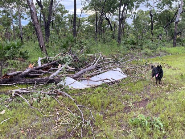 Reporting an aviation incident -of sorts. The Boy and I were on our afternoon stroll along the airstrip when I noticed a tree fallen down directly onto a airstrip marker Gable, crushing it.. What are the chances of that? I will remove the tree and fix the Gable. They are hand-me-downs from RAAF Tindal so have some heritage significance. Who knows….I might even find time to go flying some time? Alan
