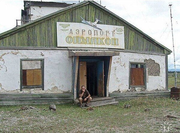 Came across these photos of Oymyakon Airport terminal in Eastern Siberia, roughly due north of Japan. Apparently Oymyakon is one of the coldest permanently inhabited settlements on Earth with temperatures from -70 to +30. I couldn't find any photos of the strip, but Google Earth shows it as unsealed. The airstrip was built during WW2 as part of the Alaska-Siberia ferry route for lend lease aircraft supplied by the U.S.