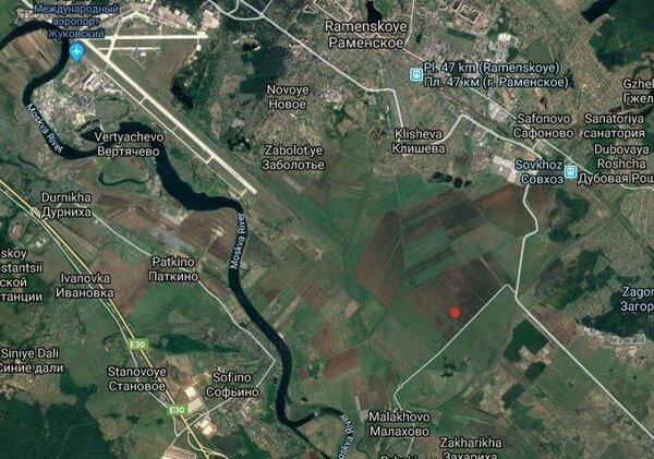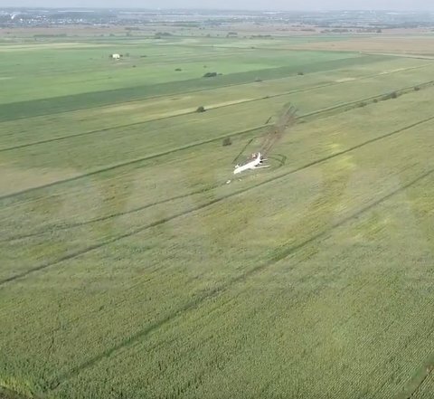 I put a red dot on the satellite screen grab where it landed. That line with some trees that the plane crossed is actually quite a substantial irrigation channel full of water.
