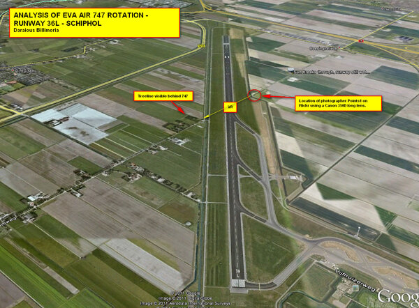 The other confusing elements were visual. Immediately behind the rotating aircraft we see a line of mature trees. Assuming by the text that the picture was taken at the end of 36L (approach for 18R), I just could not explain the trees.