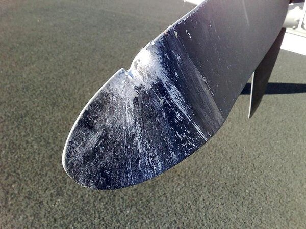 One small overnight nylon bag (ladies knickers, powder and book) came out and hit the propellor.