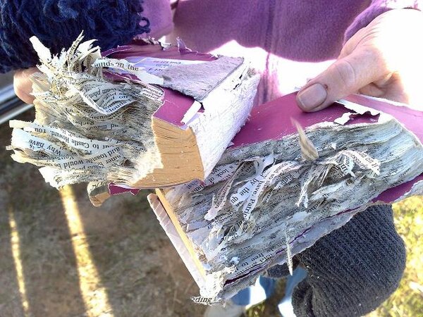 The novel did 95% of the damage - we found what was left of the bag, powder and book, but we never did find those knickers! i_dunno