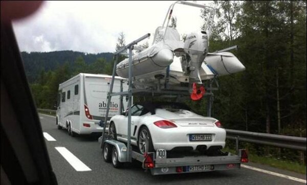 13. Takes the Porsche out first then lowers trailer into very deep water.
