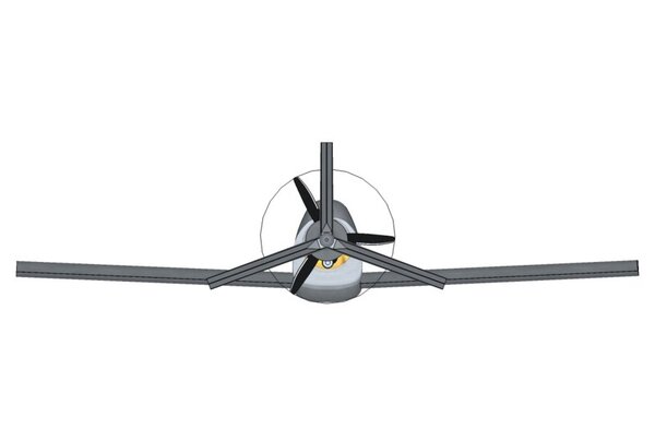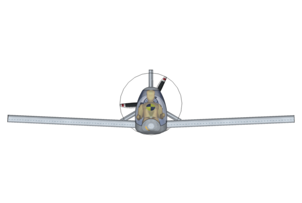 Thanks for your comments guys. Now the come back. TP, yes too much prop blanketing and I intended for a more pointy rear end but ran into two problems. First was that I've been experimenting with a new addon to Google SketchUp called Curviloft. This program adds a skin to per-constructed 'formers' or stations. It sounds easy but in reality, if you don't get the stations right, the skin takes on all sorts of weird forms. I lost control quite a few times and my design suffered somewhat. I'll be trying for a better shape shortly. The second reason, and more believable is that, for mechanical reasons, I don't want a long prop hub. Therefore I'm stuck with close proximity of prop to fuselage. As you say in your second post, a ducted prop etc is too far away from what I want so no, not going that way. The possibility of losing the boom and tail assembly has been raised in many discussions on this configuration and my basic answer is, a) build it strong, even at the expense of weight and speed. Choose bearings that will be under running their normal speed and load specs. b) Fit a ballistic cute. As far as I know, there's no previous design using the bearing method that I've designed. Most mid prop systems had a small bearing on a thin tube which necessitated one or two extra stay to hold the tailplane. Again, not what I want. Bob, yes my boom and feathers was too small. When I first set out on this redesign, this assembly was the first to be completed. I was working from "this looks right" point of view. Later, the fuselage turned out bigger than I thought and I never really looked closely at the comparable sizes. I see now where you're coming from so I've scaled up the rear end and, I've taken 10 degrees dihedral (anhedral? not in dictionary) from the horizontal stabs. I knew that the 120 degrees between surfaces was wrong but, being pig headed............. Re shaping the fuselage will help re vortex separation etc. In a perfect would, I would go as far as a pair of contra-rotating props to cure many concerns. I personally think that c/r props should be allowed if on the same axis. Just call it a single 'Propulsion system' not 'twin props'. Yes I know, hellish heavy, expensive and complex..........but doable. As for the stall comments, I don't think it will be as bad as you intimate. the prop only covers about 16% of the total wing span and most of that is that section through the fuselage. Actual wing surface would be about 7%. I have more concerns about the same area having a negative influence when the flaps are lowered. Note that I have a 3 bladed prop so only one blade affected at any moment in time. I have looked at Taylor's Mini-imp but even he had trouble, mainly in the long drive shaft required. Again, I'm not looking for a clone. Would morphing control surfaces need mass balancing? Birds don't have them Guess that's going to be a wait and see type of thing. A more considered answer is that most control surfaces are hinged on a central axis and need some form of dampening from time to time. My system can't flutter as it's driven from both top and bottom simultaneously, side to side in the case of the rudder, and will be much stiffer than conventional. To appreciate that statement, take a piece of paper and fold it in half. Hold the open ends to form a control surface and then push/pull to activate the curve. That's the basis of my design. There is one big drawback however. The surface must have a constant X-section which negates tapered depth wings and tail plane surfaces. Looks particularly ugly on the tail surfaces unfortunately. Under-carriage will probably be wood and fiber-glass composite. Why do you specifically ask that? Ah, thinking of prop strike in the case of a hard landing perhaps. The idea is not to land hard Bearing in mind that all things can change, does this look better? -