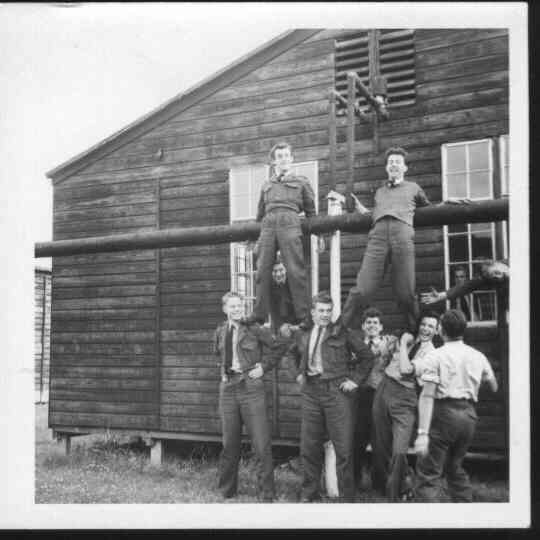 G'day tlamdweeb, welcome to the forum. Your last post reawakened fond memories of Yatesbury, in it's day as RAF Yatesbury, an air-radar training station. I spent many months, years, there completing various courses. I've just had a look on Google Earth and am happy to see that at least some of the site still remains,ie the hangars. God I hated guarding those in the depths of winter (we all had guard duties from time to time). Just done a search and the only images I can find of Yatesbury in it's Heyday are from the late 40's or early 50's. I was first there in 1960 but not much had changed. Some horse play between classes. I'm bottom row and struggling on the right. Graduation to Junior technician. I'm 2nd left. Ah happy days.........................mostly.